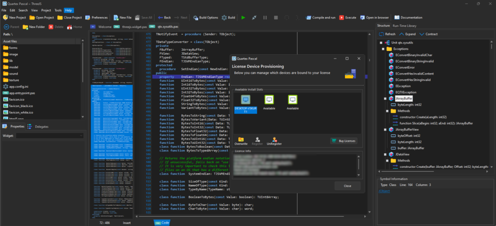 Quartex Pascal is very much ‘the road less taken’ in terms of engineering. A product that compiles object pascal to JavaScript, has its own RTL (runtime library) with hundreds of classes that interface with both the DOM and NodeJS. A system that has its own independent IDE with debugging, package support, form design and much, much more!