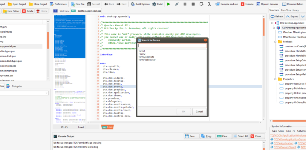 - Shift + F12 now brings up a quick-search dialog, just like delphi