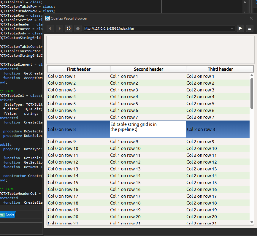 Our users have requested a string-grid and database-grid more akin to what they are used to under Delphi and Lazarus. We agree, and have already started on a more friendly drag & drop grid that can be easily styled, inherited from and used in a variety of ways.
