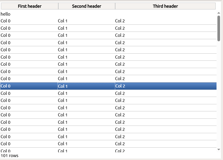 You can also add event-handlers for row and column selection and do special colors changes or style changes if you like. All elements of the table are full TQTXWidgets so you have the full might of the RTL to throw at it, including animations if you like.