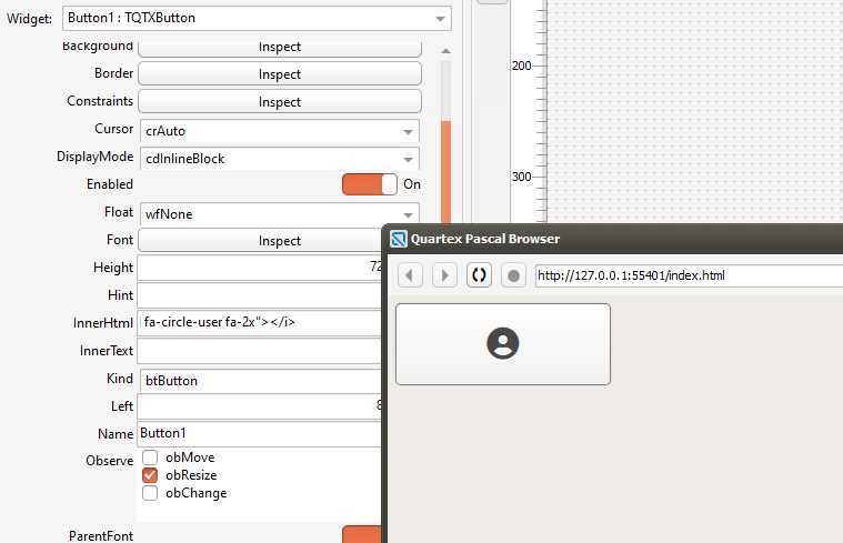 In Quartex Pascal you can use this anywhere you like, such as the innerHTML property of a button. Drop a button on a form, set the background and border style to button, then insert the following text into the InnerHTML type: