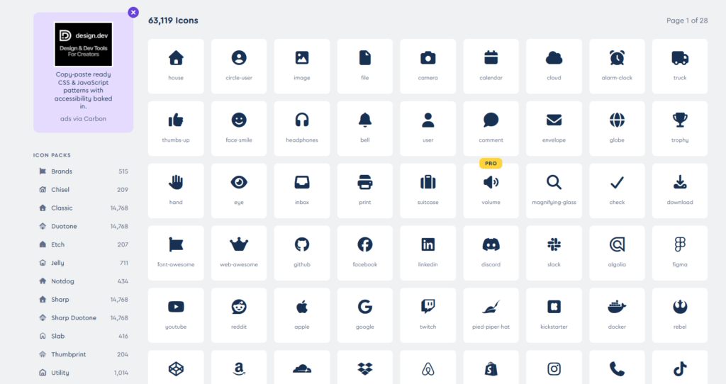 The second line instructs the browser to download the Font-Awesome library (version 6.4.2 in this case) and make all the amazing glyphs usable from your web application. In this case we are using the Cloudflare hosted version which loads in less than a second pretty much anywhere in the world (this is maintained by Font-Awesome, not us). You can download Font-Awesome locally if you like, but the distribution is quite large. And there really is no need for it, the browser will store it in the cache.